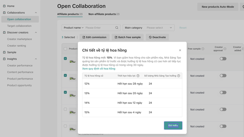 - Bước 2: Chỉnh sửa mức hoa hồng