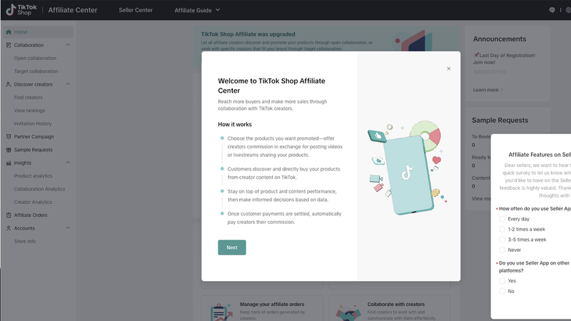 - Vào tiktok Shop Seller Center → Chọn mục Tiếp thị liên kết.