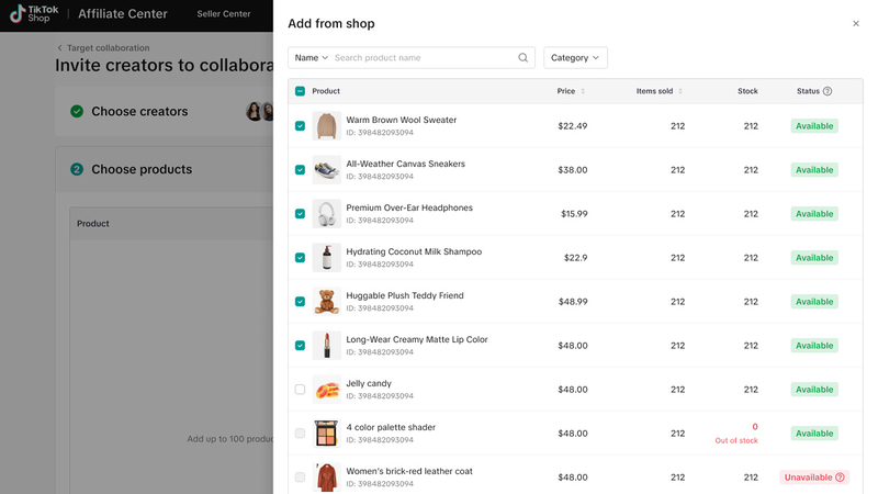 - Tìm kiếm sản phẩm phù hợp với nội dung kênh (theo tên hoặc danh mục).