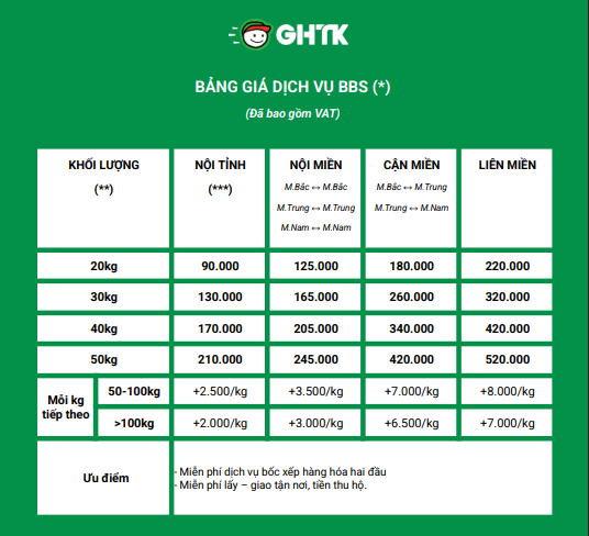 Tham khảo bảng cước ví vận chuyển hàng cồng kềnh GHTK tại đây.