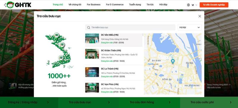 Khách hàng có thể tra cứu bưu cục nhanh chóng trên website GHTK