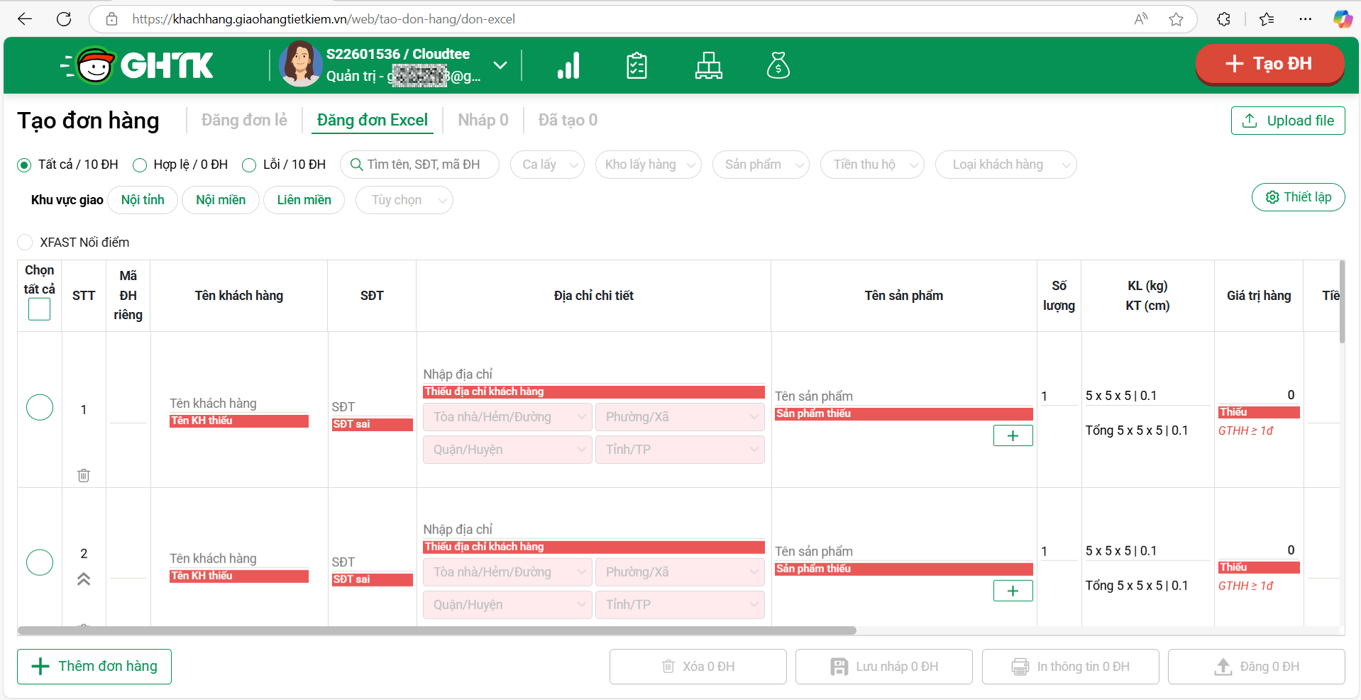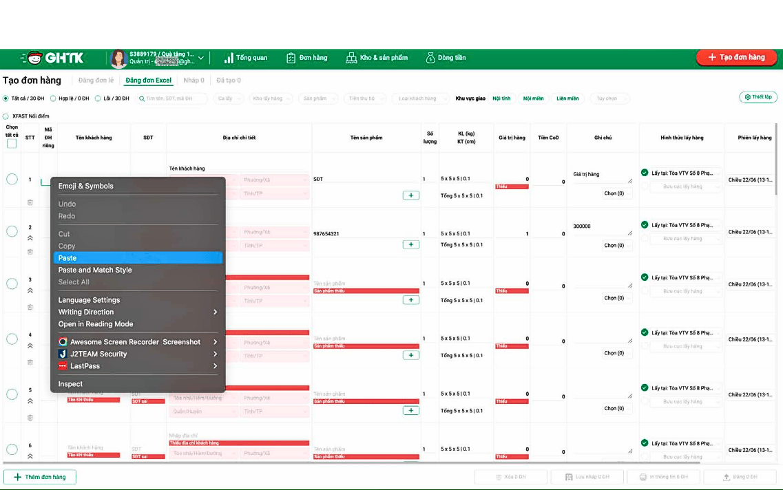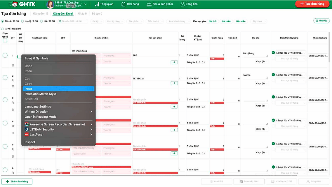 Tạo đơn hàng loạt trên GHTK bằng excel
