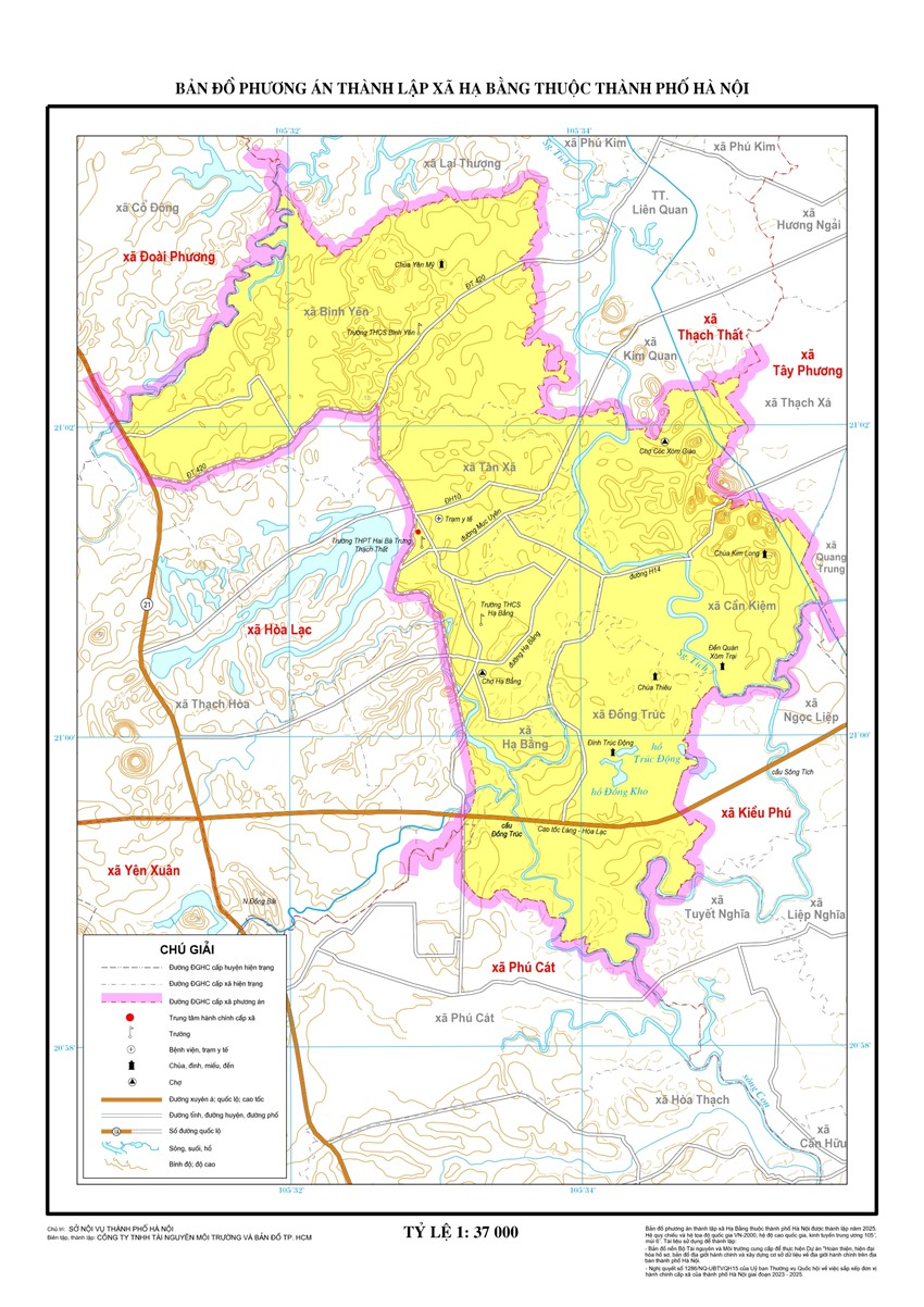 - Tiếp nhận thêm: Phần lớn diện tích tự nhiên và dân số của các xã Bình Yên, Hạ Bằng (cũ); một phần diện tích tự nhiên và dân số của xã Tân Xã và xã Phú Cát (huyện Quốc Oai).