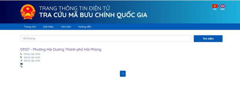 Trang web sẽ hiển thị kết quả là mã bưu chính (5 chữ số) tương ứng với địa chỉ bạn đã nhập, cùng với các thông tin liên quan khác của bưu cục phụ trách.