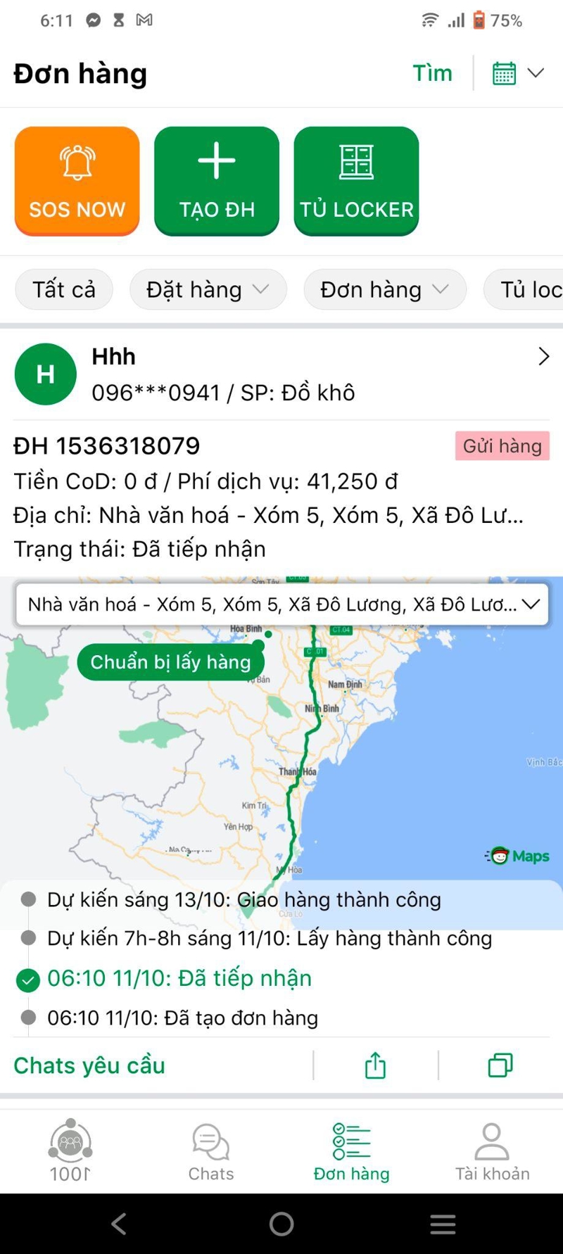 - Truy cập ứng dụng của đơn vị vận chuyển → mục “Đơn hàng”.