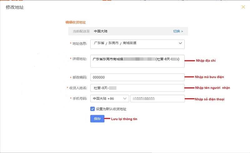 Bước 5: Tạo địa chỉ nhận hàng Taobao