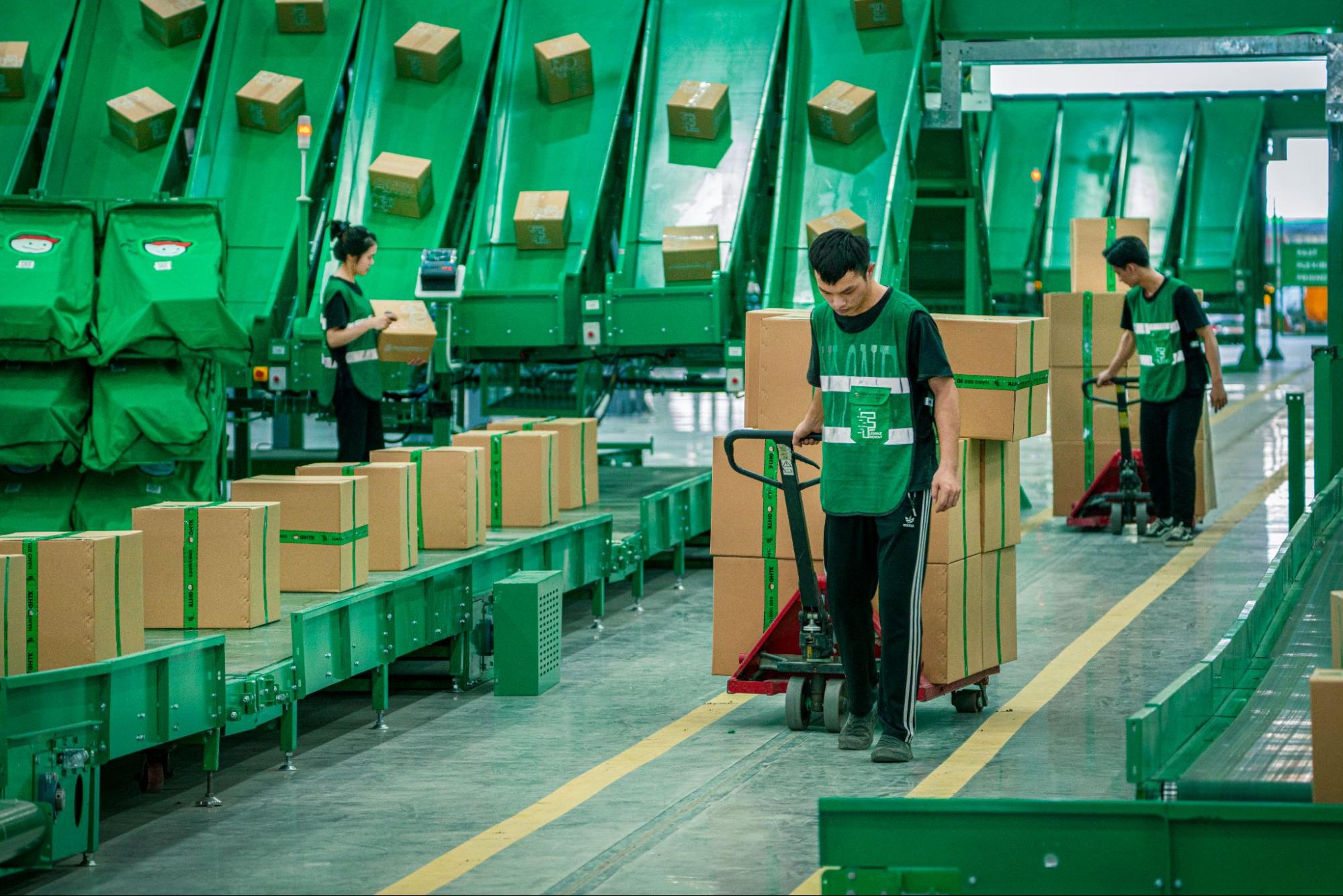 Hàng hóa được tập trung tại các kho trung chuyển lớn để chia chọn tuyến
