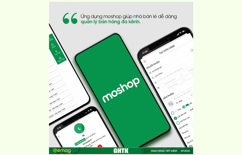 Được phát triển bởi Giaohangtietkiem (GHTK), Moshop là giải pháp "đo ni đóng giày" cho các cửa hàng tạp hóa có phát triển kênh bán online và giao hàng tận nơi. Phần mềm giải quyết triệt để khâu vận chuyển, từ việc đẩy đơn sang GHTK chỉ với 1 click đến việc quản lý dòng tiền thu hộ (COD) minh bạch. Đây là công cụ đắc lực cho các tạp hóa muốn mở rộng phạm vi phục vụ ra khỏi khu vực dân cư lân cận thông qua giao hàng.