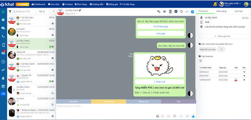 - Quản lý khách hàng: Lưu trữ thông tin người từng nhắn tin, mua hàng, hỗ trợ chăm sóc lại.