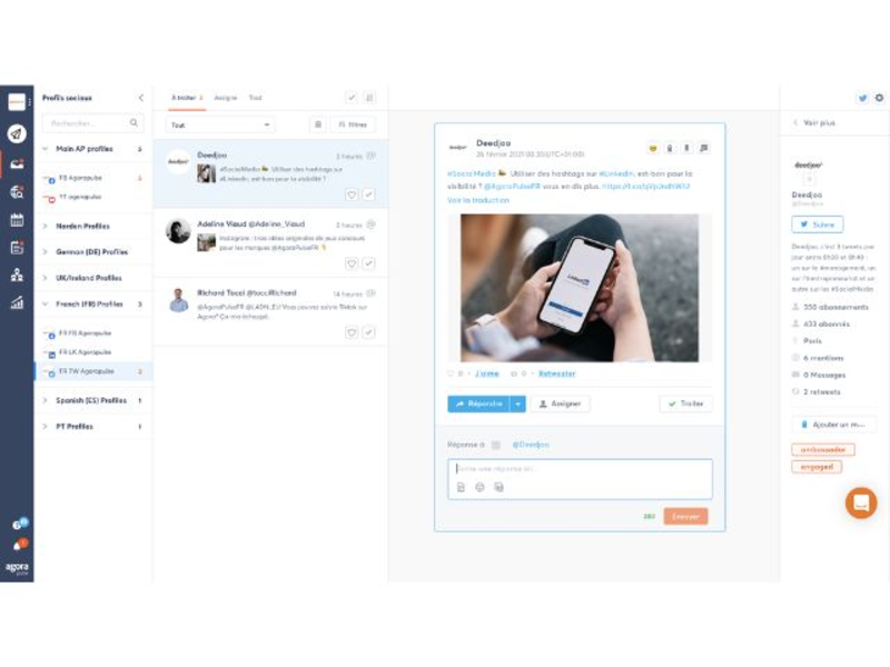 Agorapulse là phần mềm quản lý mạng xã hội chuyên nghiệp đến từ Pháp, nổi bật với khả năng quản lý tương tác, lập lịch đăng bài và phân tích hiệu suất đa nền tảng. Công cụ này được hơn 31.000 doanh nghiệp, marketer và agency trên toàn thế giới tin dùng nhờ giao diện trực quan, báo cáo mạnh mẽ và khả năng quản lý hội thoại tập trung.