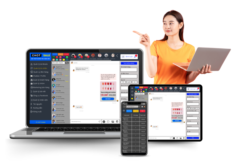 - Quản lý đơn, khách hàng, gắn tag và phân loại theo hành vi.
