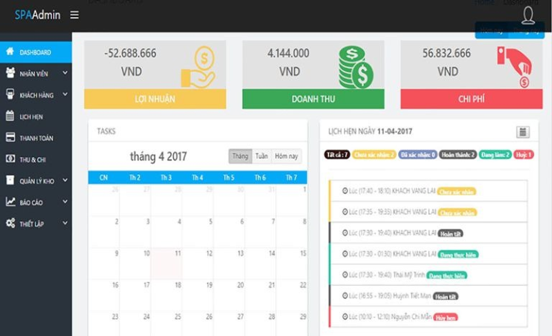 - Quản lý thu chi, công nợ, doanh thu và báo cáo tài chính: Spa có thể theo dõi lợi nhuận, doanh thu theo dịch vụ, nhân viên hoặc thời điểm, giúp việc quản lý tài chính trở nên dễ dàng và minh bạch hơn.