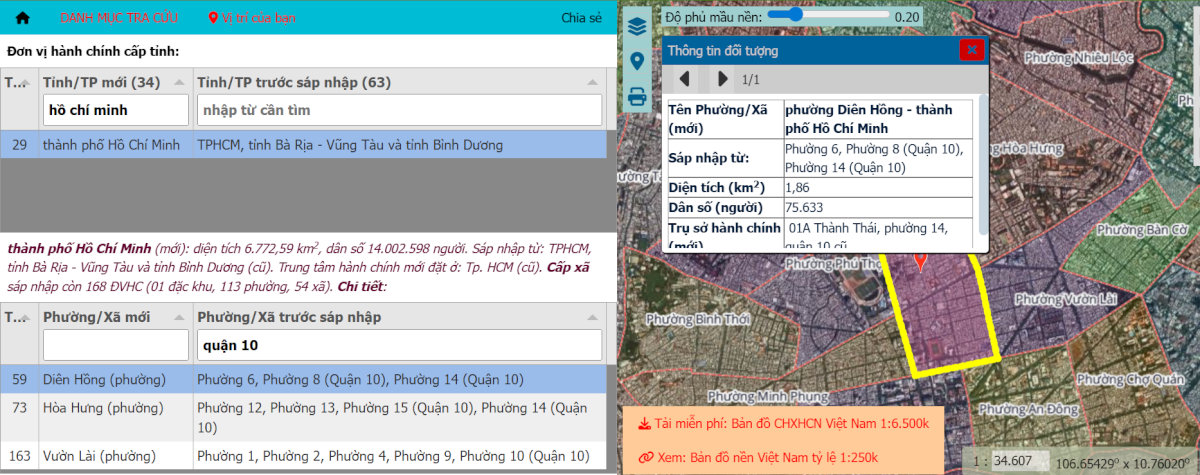 - Bước 2: Nhập "Thành phố Hồ Chí Minh" và tên "Phường Diên Hồng" vào ô tìm kiếm. Hệ thống sẽ hiển thị chi tiết ranh giới mới bao trùm khu vực phường 8 cũ để người dân tiện đối chiếu.