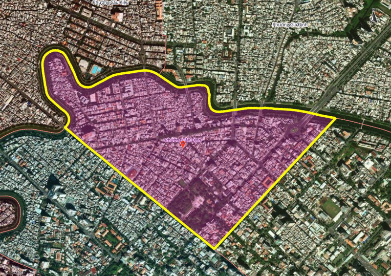 - Toàn bộ diện tích tự nhiên và quy mô dân số của phường Tân Định (Quận 1 cũ).