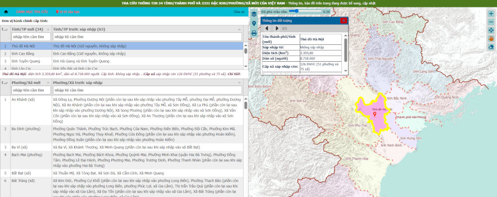 Truy cập địa chỉ https://sapnhap.bando.com.vn/. Tại giao diện chính, sau khi chọn "Thành phố Hà Nội", bạn hãy tìm kiếm tên các phường mới thuộc quận Nam Từ Liêm. Hệ thống sẽ hiển thị trực quan ranh giới mới được tô màu và cung cấp thông tin chi tiết về sự thay đổi của từng khu vực.