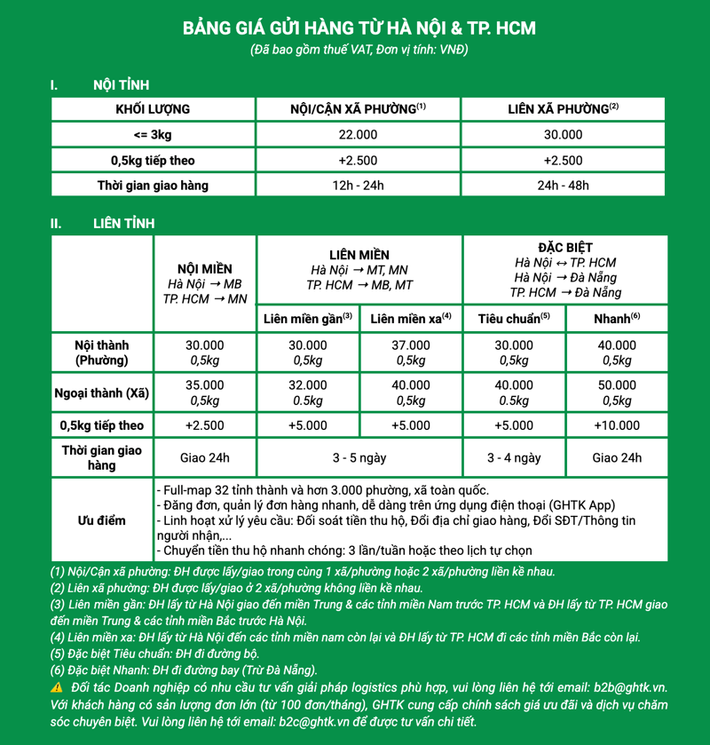 Sau khi đã xác định khối lượng hàng hóa theo công thức quy đổi kích thước GHTK, khách hàng có thể tham khảo chi phí vận chuyển theo bảng giá chi tiết dưới đây.