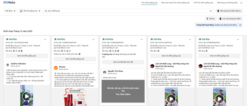 - Quốc gia: Lọc quảng cáo đang chạy tại Việt Nam, Thái Lan, Singapore,... tùy thị trường mục tiêu của bạn.