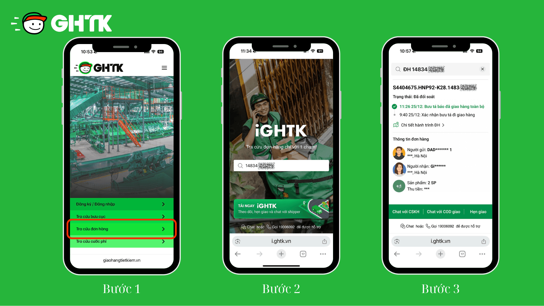 Mỗi khi đơn hàng có thay đổi (như đã lấy hàng, đang giao, giao thành công, hoàn hàng...), hệ thống sẽ cập nhật ngay lập tức trên các kênh tra cứu như website, app GHTK, iGHTK.