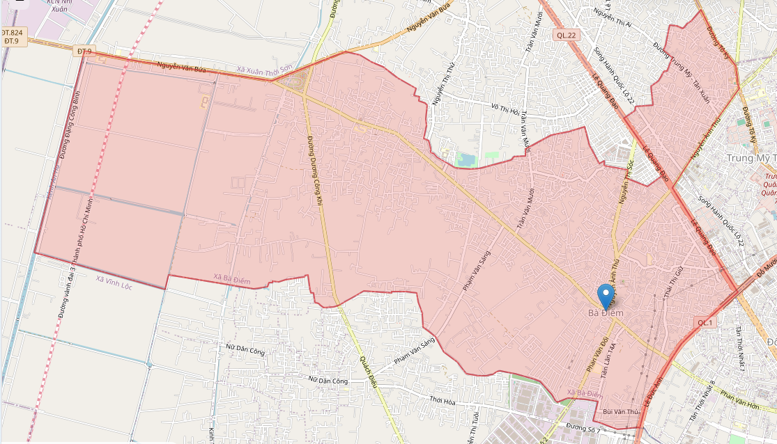 - Toàn bộ diện tích và dân số của xã Bà Điểm (huyện Hóc Môn cũ).