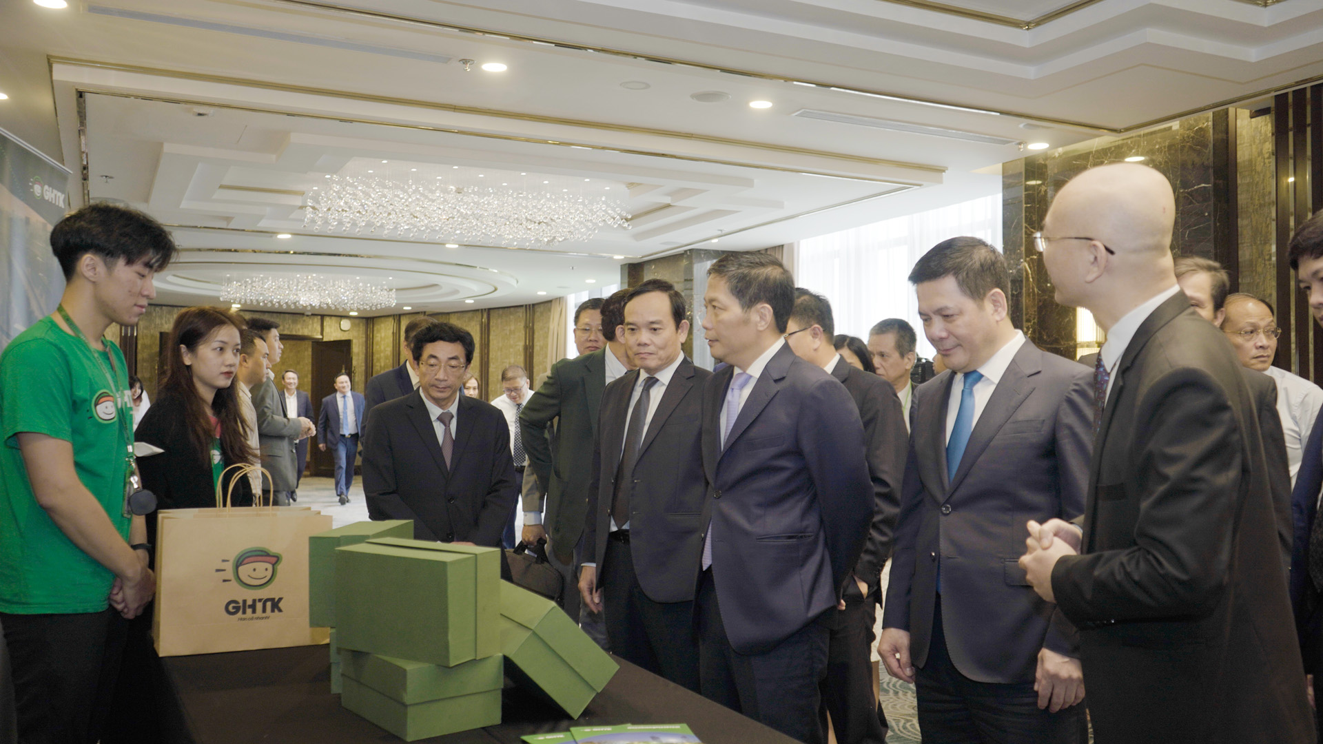 Các đại biểu tham quan gian hàng trưng bày của GHTK.