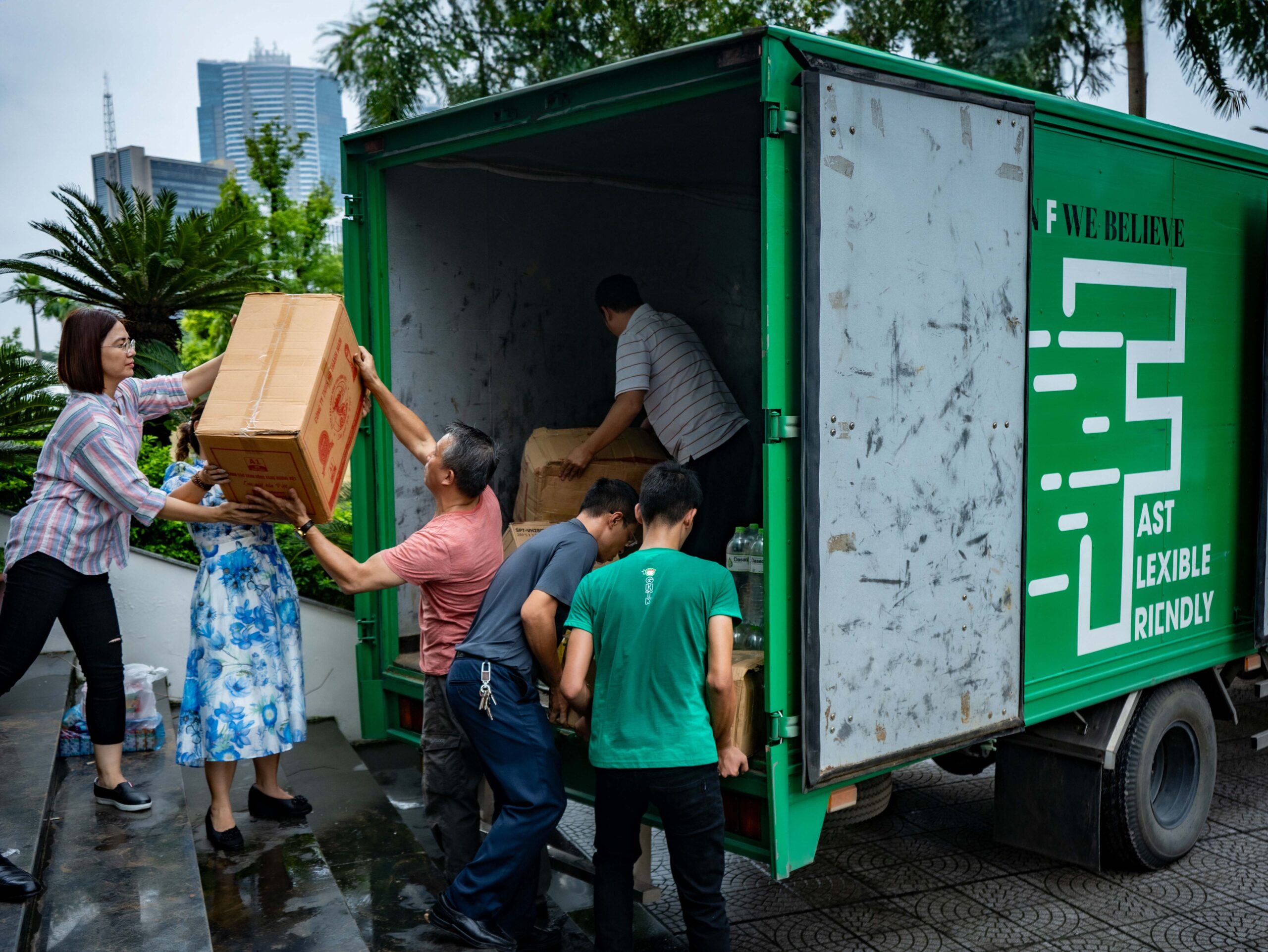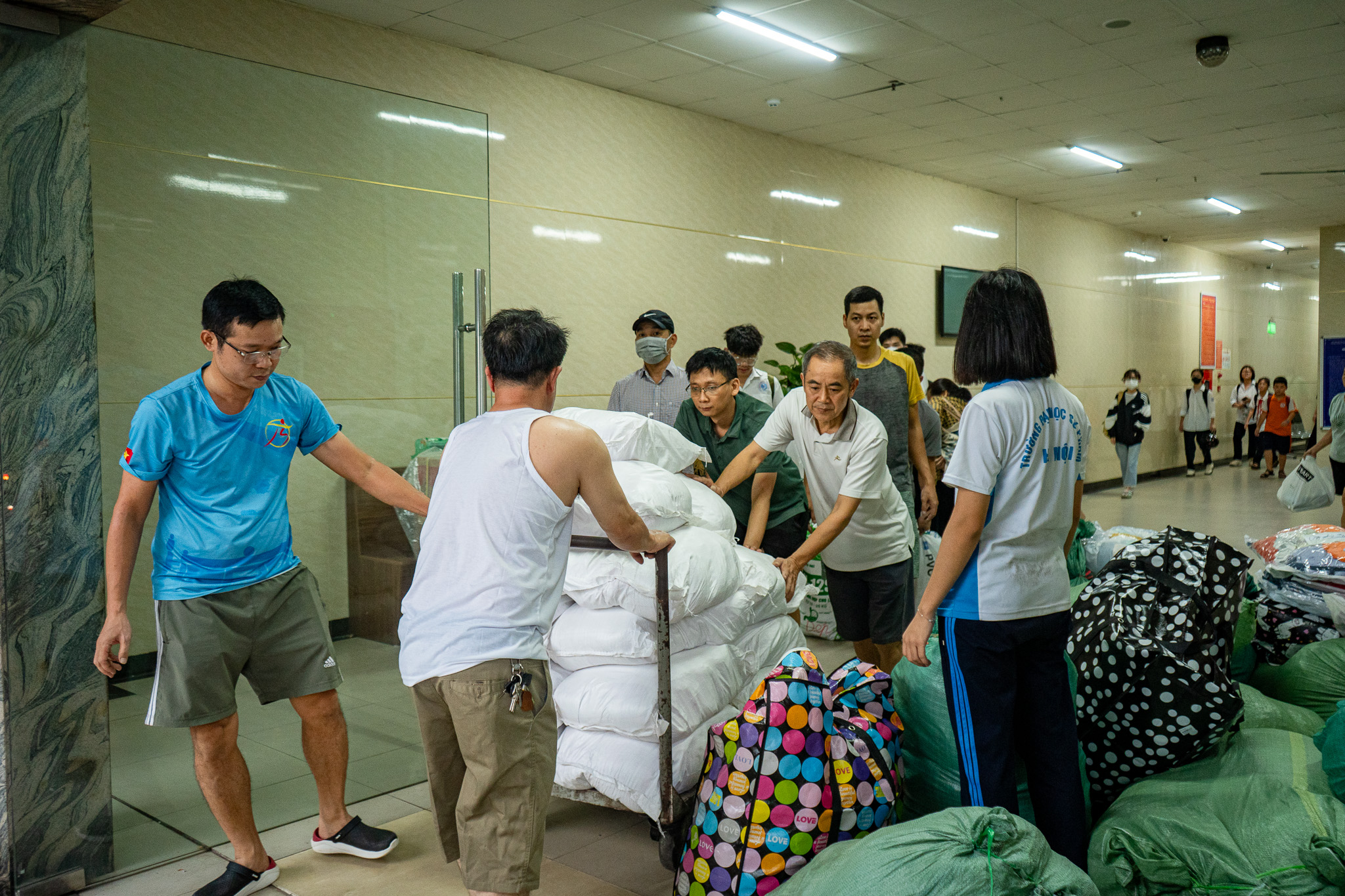Những cánh tay thoăn thoắt nối dài, chất từng thùng hàng lên xe để hàng cứu trợ kịp đến với bà con. Những chiếc xe tải đi dọc từng tuyến phố, thu gom cây đổ gãy để Hà Nội nhanh chóng xanh đẹp trở lại. Hàng trăm chuyến xe, lấy hàng từ nhiều điểm khác nhau, tất cả đều không quản khó khăn, không chỉ mang theo những nhu yếu phẩm hay dọn dẹp những vết tích của thiên tai mà còn chở theo cả tấm lòng, tình đồng bào hướng về đồng bào nơi bão lũ.