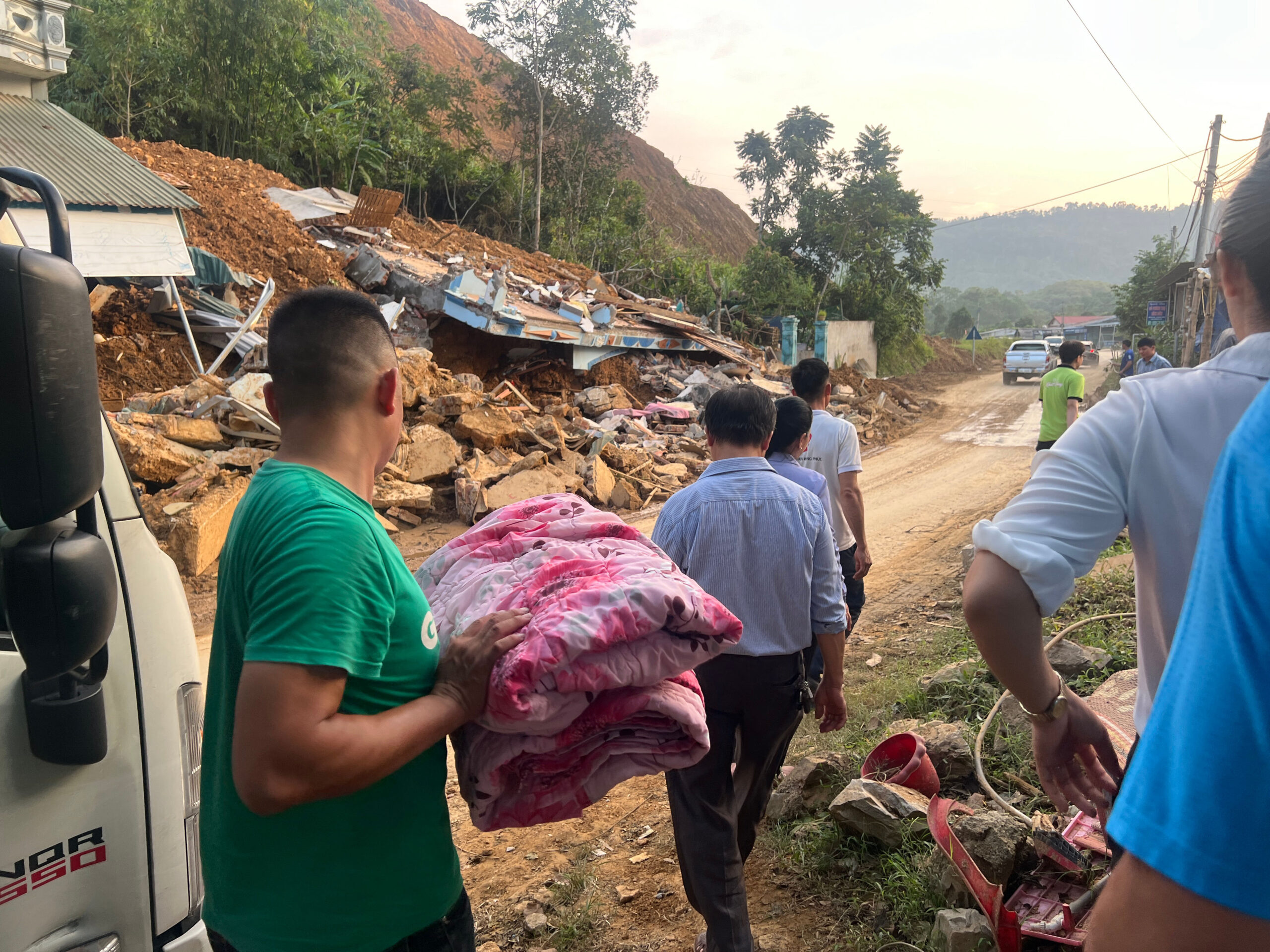 Vượt đèo, vượt xa, vượt qua những con đường sạt lở để trao tận tay hàng cứu trợ đến với người dân bị sập nhà sau bão