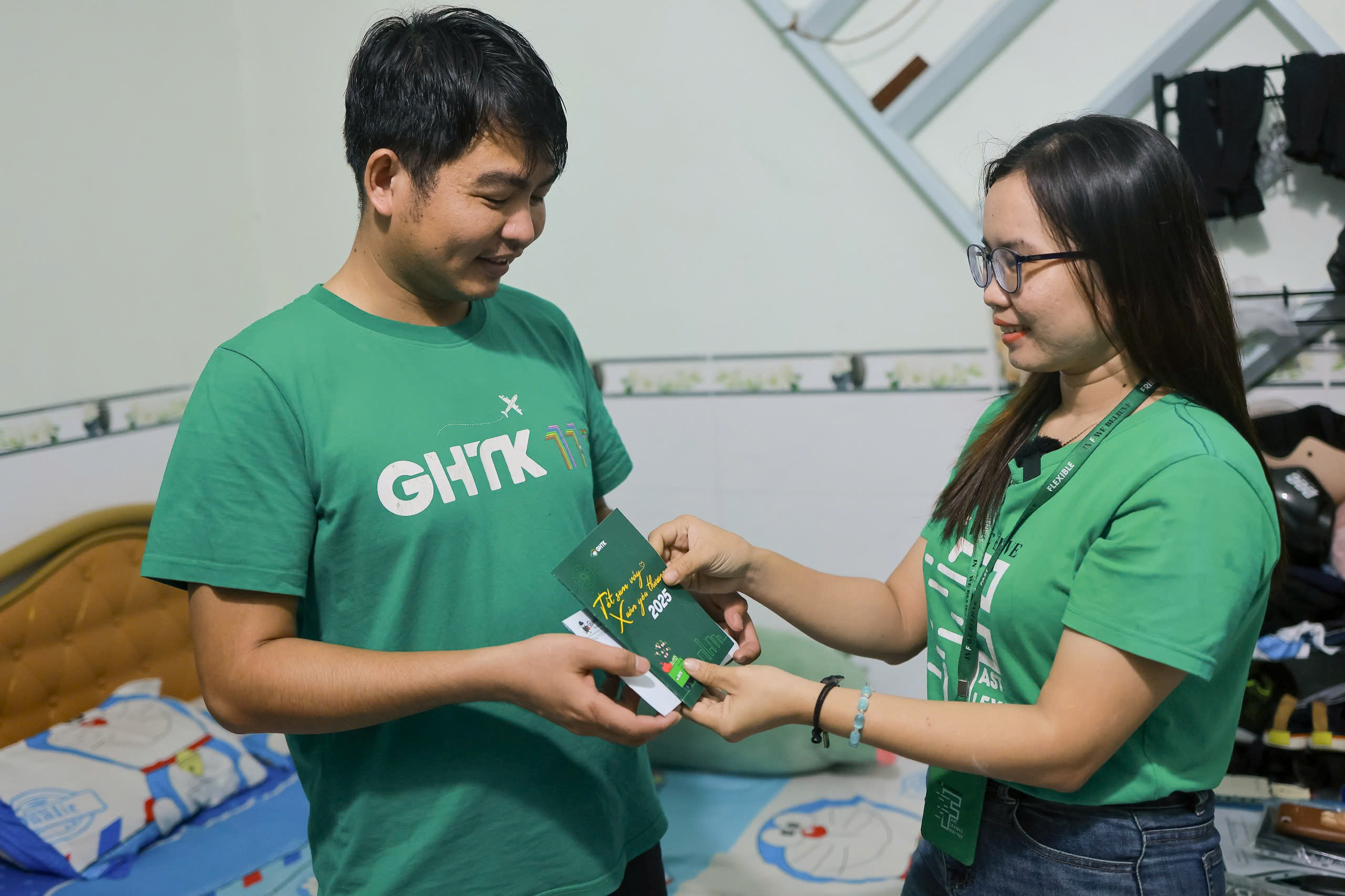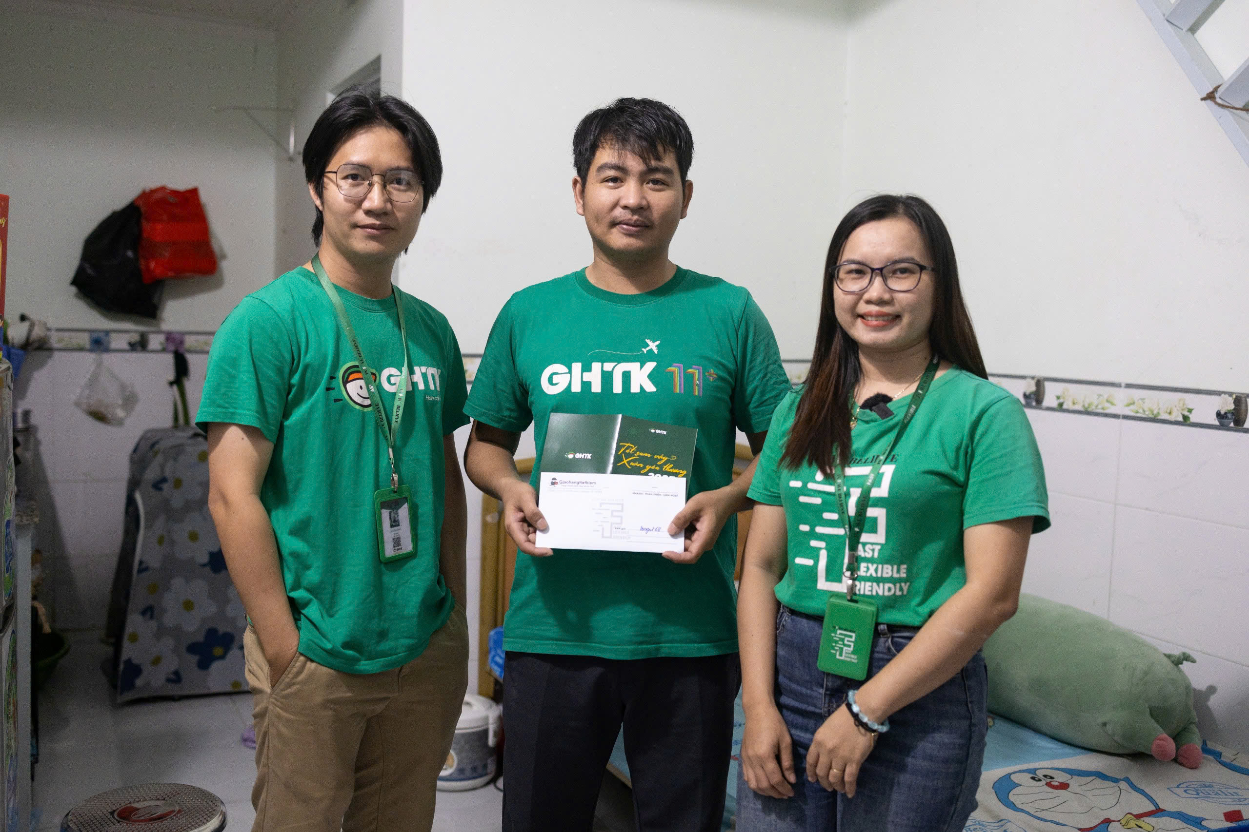 Đông đảo thành viên GHTK, từ hành chính nhân sự, tài xế, COD, điều phối đến các Keyperson,... đều không ngại đường xa, tận tay mang quà đến từng nhà, chia sẻ, hỏi han và lắng nghe những câu chuyện của các gia đình. Màu áo xanh GHTK xuất hiện tại các gia đình đã mang theo hơi ấm dịp cận Tết, thắp sáng niềm vui và hy vọng nơi từng gia đình thành viên.