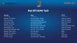 Đại sứ sáng tạo do chị Phạm Thị Thoa - Leader team Phát triển & Sáng tạo công bố kết quả. Với những ý tưởng mới để cải thiện công việc, Đại sứ Sáng tạo được mong chờ sẽ có thật nhiều "bứt phá" vào năm mới