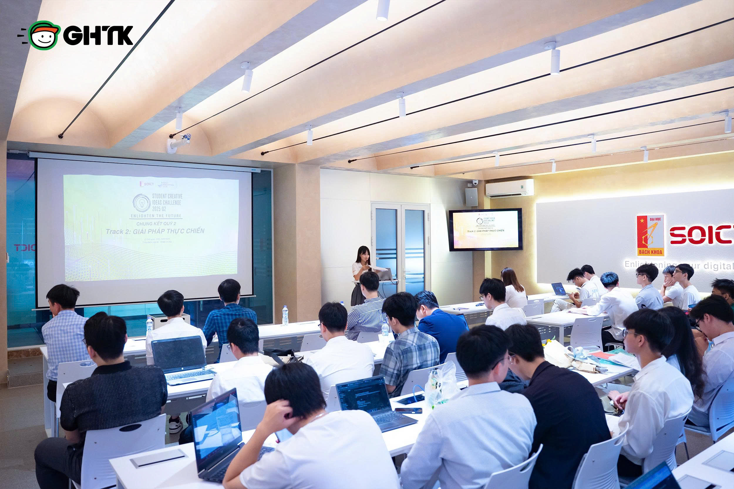 Cuộc thi SCIC 2025 được tổ chức theo 3 vòng, với sự đồng hành chuyên môn và hỗ trợ từ GHTK ở từng giai đoạn. Ngay từ Vòng 1 – Đăng ký ý tưởng, GHTK tham gia xây dựng nội dung và đề xuất các bài toán thực tiễn, tạo thành một track riêng để sinh viên lựa chọn và phát triển giải pháp công nghệ ứng dụng. Sang Vòng 2 – Huấn luyện & Cố vấn, GHTK phối hợp cùng Ban tổ chức cung cấp nội dung và kết nối đội ngũ mentor có chuyên môn phù hợp, góp phần hỗ trợ sinh viên định hướng kỹ thuật và hoàn thiện giải pháp. Đến Vòng 3 – Chung kết trình bày dự án, chuyên gia của GHTK tham gia hội đồng giám khảo, đánh giá các dự án về mặt kỹ thuật, tính ứng dụng và tiềm năng triển khai, đồng thời tiếp tục đồng hành cùng những nhóm có năng lực nổi bật trong giai đoạn phát triển sau cuộc thi.