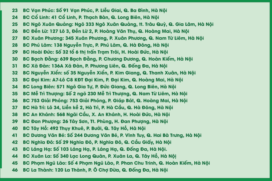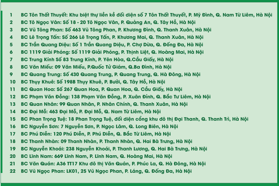 Dưới đây là danh sách bưu cục tại TP.Hà Nội: