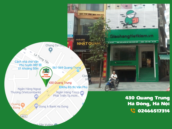 Cách ngã tư Quang Trung - Lê Trọng Tấn Hà Đông 400m. Cạnh điểm gửi hàng có shop nhà đèn Nhật Quang.