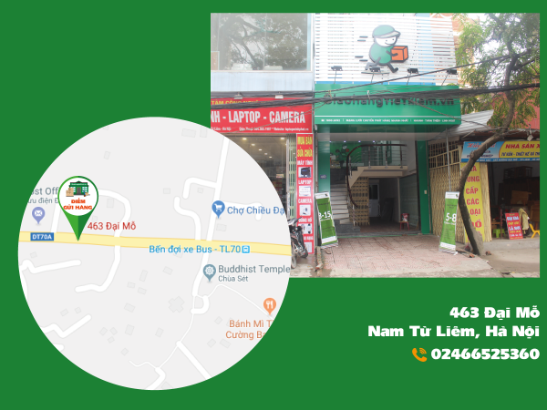 Điểm gửi hàng nằm cách 200m về phía bên phải so với siêu thị Mini BigOne. Cách ngã tư Tây Mỗ - Đại Mỗ khoảng 300m.
