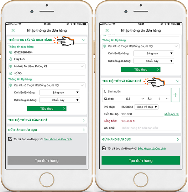 - Sau khi hoàn thành các thông tin, nhấn "Tạo đơn hàng" để hoàn thành việc đăng đơn.