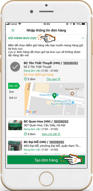 Bước 3: Chọn điểm gửi hàng gần nhất