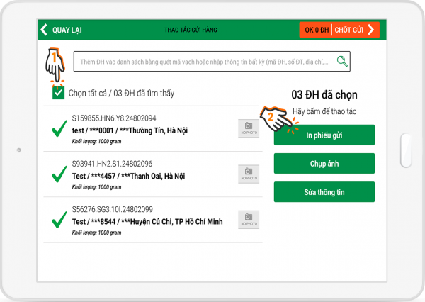 THAO TÁC TẠI ĐIỂM GỬI HÀNG: