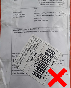 Shop không nên dán phiếu gửi hàng như sau: