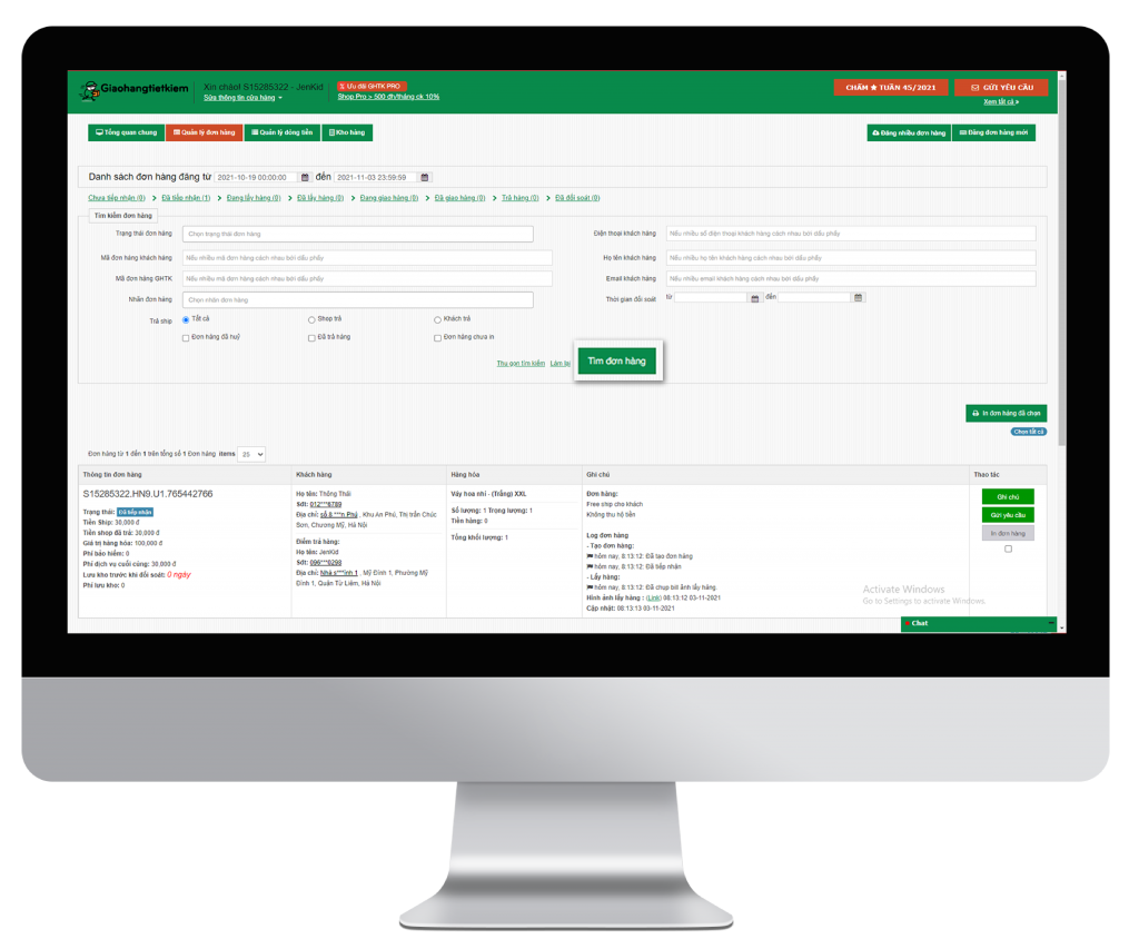 – Bước 2: Nhập thông tin vào mục “Tìm kiếm đơn hàng” => chọn “Tìm đơn hàng”.