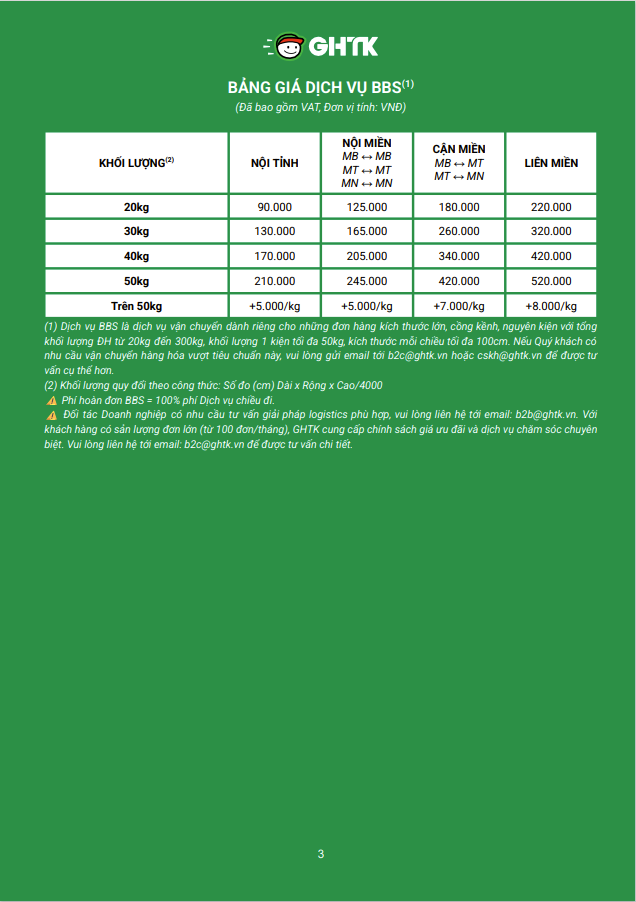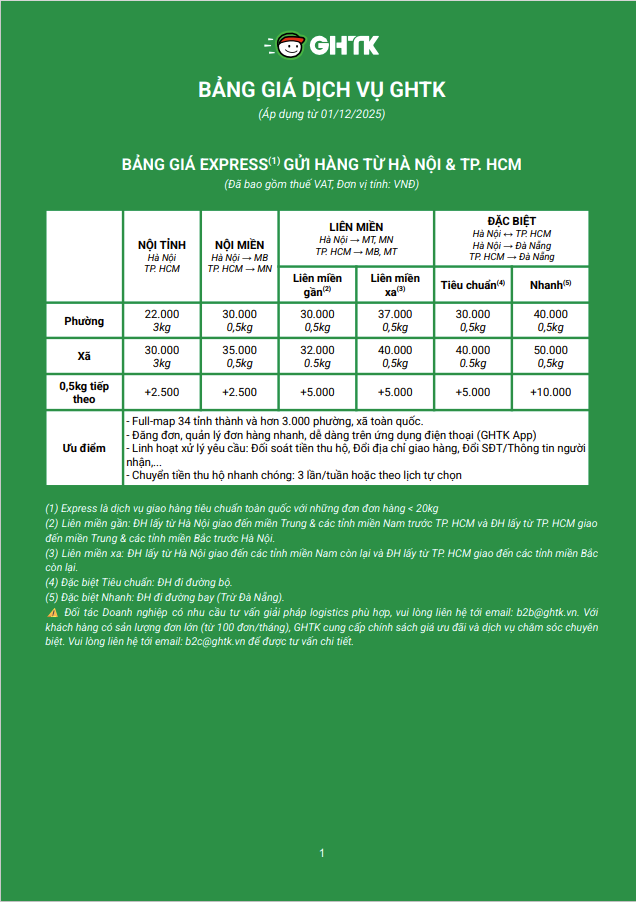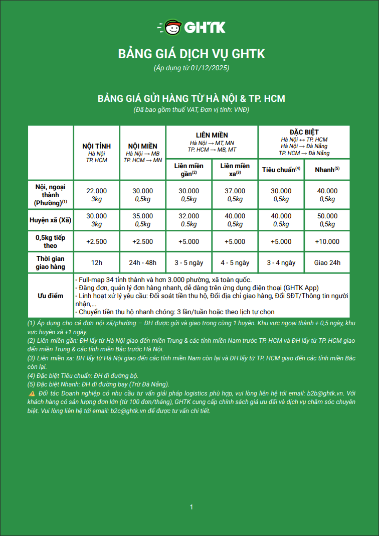 Dưới đây là chi tiết bảng giá: Dịch vụ và bảng giá GHTK áp dụng từ 01.12.2025